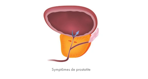 La prostatite entraîne souvent des difficultés ou des douleurs lors de la miction. Elle peut également provoquer des sensations désagréables dans la région du bassin ou les organes génitaux, et certains signes peuvent rappeler ceux d'une infection virale comme la grippe.